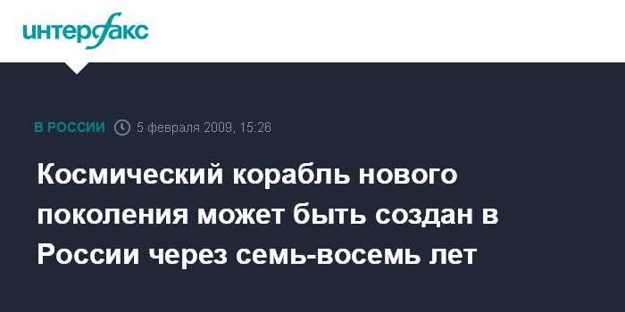 "С точки зрения создания нового космического корабля по надежности не хуже, чем современные "Союзы", но более современного, потребуется семь-восемь лет. При этом надежность всех систем должна быть как минимум три девятки (0,999, - "ИФ-АВН")", - сказал В.Лопота на пресс-конференции, посвященной космическим проектам.