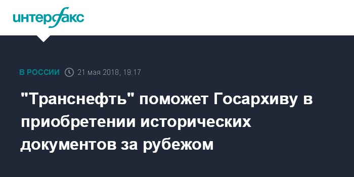 "Транснефть" поможет Госархиву в приобретении исторических документов за рубежом