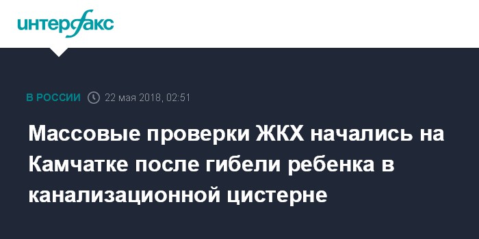 Москва. 22 мая. INTERFAX.RU - Проверки состояния объектов и сетей инженерной инфраструктуры, а также прилегающих к ним территорий начались на Камчатке после гибели шестилетней девочки в канализационной цистерне, сообщило во вторник правительство Камчатского края.