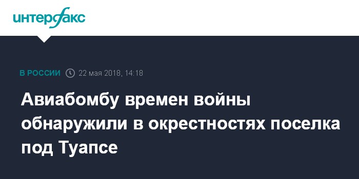 Москва. 22 мая. INTERFAX.RU - Авиабомбу времен Великой Отечественной войны обезвредили в Туапсинском районе (Краснодарский край), сообщили агентству "Интерфакс" в пресс-службе Главного управления Росгвардии по краю во вторник.