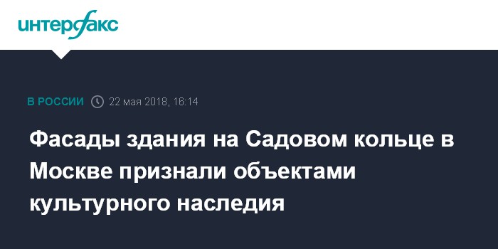 Фасады здания на Садовом кольце в Москве признали объектами культурного наследия