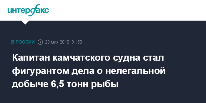 Москва. 23 мая. INTERFAX.RU - Пограничники возбудили уголовное дело против капитана камчатского судна МРС-225-053 за браконьерский вылов 6,5 тонн рыбы, сообщает в среду пресс-служба управления ФСБ по Камчатскому краю.