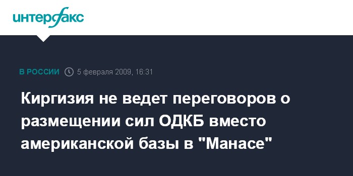 Москва. 5 февраля. INTERFAX.RU – Премьер Киргизии Игорь Чудинов заявил, что Бишкек не ведет переговоров о замещении американской авиабазы "Манас" Коллективными силами оперативного реагирования ОДКБ.
