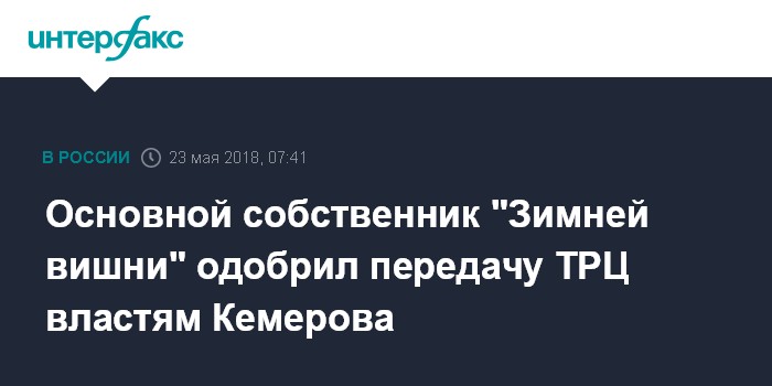Основной собственник "Зимней вишни" одобрил передачу ТРЦ властям Кемерова