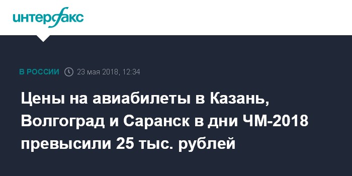 Цены на авиабилеты в Казань, Волгоград и Саранск в дни ЧМ-2018 превысили 25 тыс. рублей