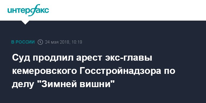 Суд продлил арест экс-главы кемеровского Госстройнадзора по делу "Зимней вишни"