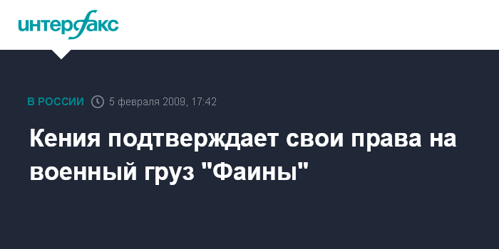 Киев. 5 февраля. INTERFAX.RU - Служба внешней разведки (СВР) Украины заявляет, ссылаясь на Минобороны Кении, что военная техника, находящаяся на захваченном пиратами судне "Фаина", направлялась именно в эту страну.