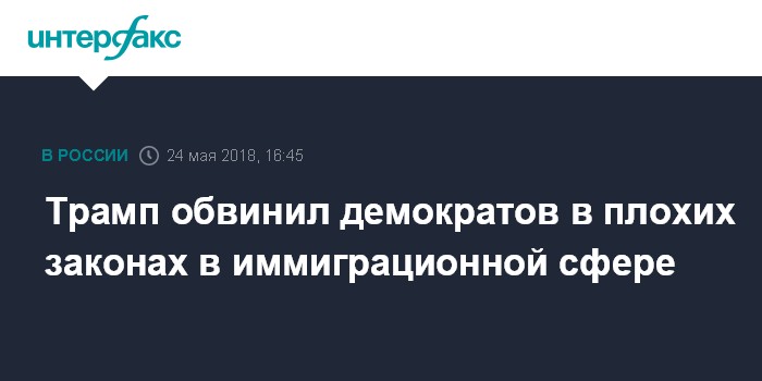 Москва. 24 мая. INTERFAX.RU - Президент США Дональд Трамп заявил, что негативно оценивает действующее американское законодательство в иммиграционной сфере.