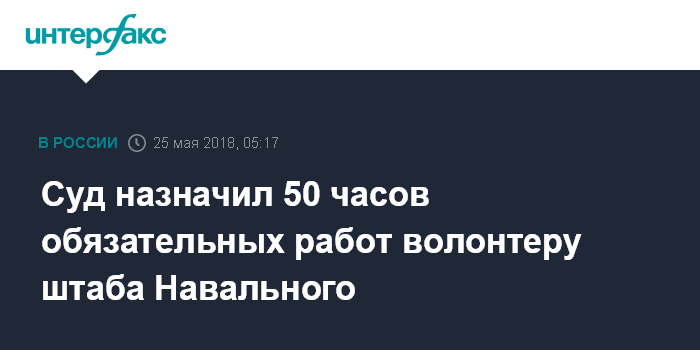 Суд назначил 50 часов обязательных работ волонтеру штаба Навального