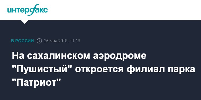 "В этом году оборудование основных элементов филиалов парков "Патриот" планируется завершить на аэродроме "Пушистый" Сахалинской области к 1 августа, в Хабаровске - к 1 сентября", - добавили в департаменте.