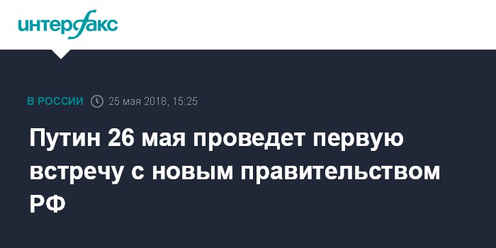 Москва. 25 мая. INTERFAX.RU - В субботу, 26 мая в Кремле состоится первая встреча президента РФ Владимира Путина с новым составом правительства Российской Федерации, сообщает пресс-служба Кремля.