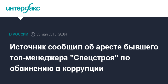 Источник сообщил об аресте бывшего топ-менеджера "Спецстроя" по обвинению в коррупции