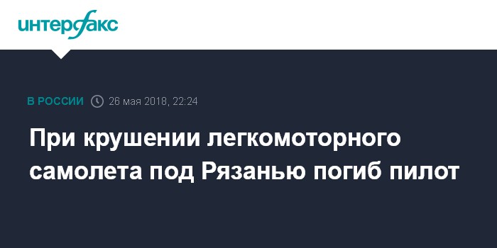 Москва. 26 мая. INTERFAX.RU - Легкомоторный самолет "Бекас" потерпел крушение под Рязанью, организована доследственная проверка, сообщает "Интерфаксу" представитель Московского Следственного управления на транспорте СК РФ Елена Марковская в субботу.