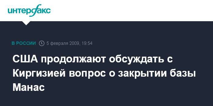 Вашингтон. 5 февраля. INTERFAX.RU - Между Киргизией и США продолжается обсуждение темы закрытия американской военной базы Манас в Киргизии, заявил в четверг и.о. пресс-секретаря Госдепартамента США Роберт Вуд.