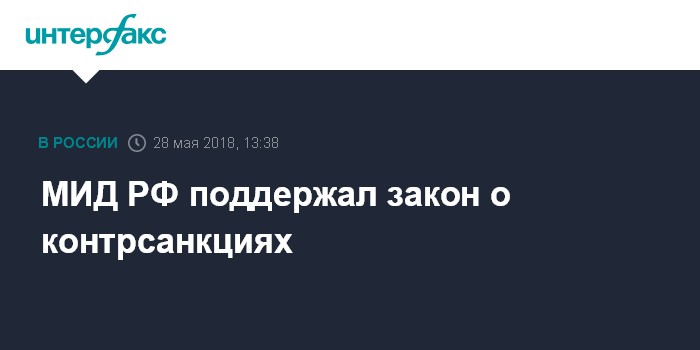 Москва. 28 мая. INTERFAX.RU - МИД РФ поддерживает закон о контрсанкциях, в нынешнем виде он является оптимальным, заявил в понедельник директор департамента Северной Америки МИД РФ Георгий Борисенко.