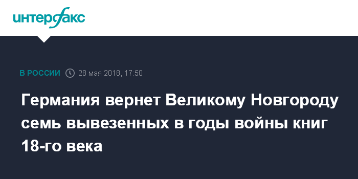 Германия вернет Великому Новгороду семь вывезенных в годы войны книг 18-го века