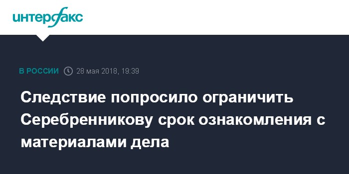 Москва. 28 мая. INTERFAX.RU - Следствие попросило об ограничении срока ознакомления с материалами уголовного дела художественному руководителю "Гоголь-центра", режиссеру Кириллу Серебренникову и другим фигурантам дела "Седьмой студии", обвиняемым в хищении бюджетных средств.