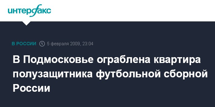 Москва. 5 февраля. ИНТЕРФАКС-МОСКВА - В Подмосковье ограблена квартира полузащитника национальной сборной России и петербургского ФК "Зенит" Романа Широкова.