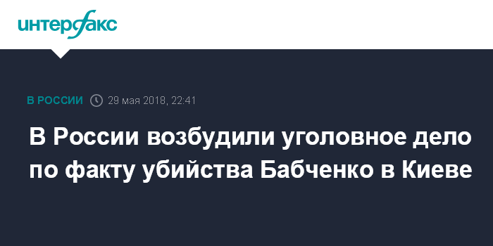 Москва. 29 мая. INTERFAX.RU - Следственный комитет России возбудил уголовное дело по факту убийства российского журналиста Аркадия Бабченко, застреленного в своей квартире в Киеве во вторник вечером, говорится на сайте ведомства.
