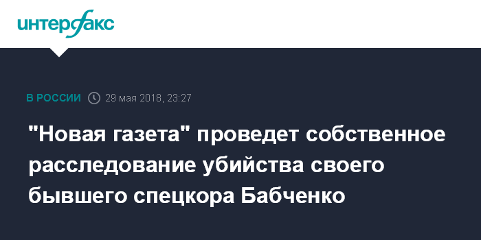 Москва. 29 мая. INTERFAX.RU - "Новая газета" проведет журналистское расследование убийства в Киеве российского журналиста Аркадия Бабченко, сообщил "Интерфаксу" основатель газеты Дмитрий Муратов во вторник.