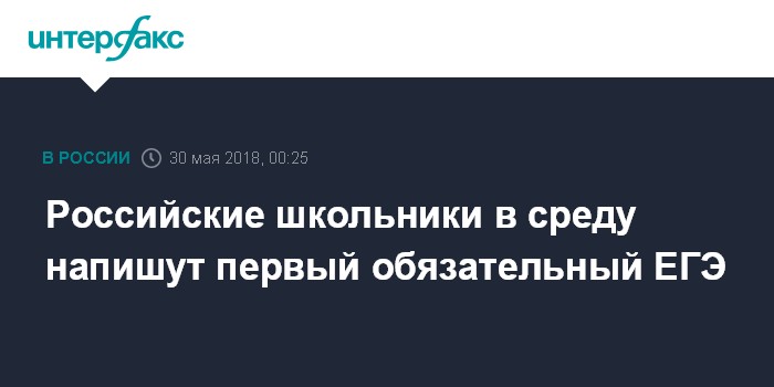 Москва. 30 мая. INTERFAX.RU - Единый государственный экзамен по математике базового уровня сдадут российские школьники в среду, он станет первым обязательным ЕГЭ основной волны в этом году.