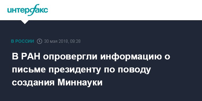 В РАН опровергли информацию о письме президенту по поводу создания Миннауки