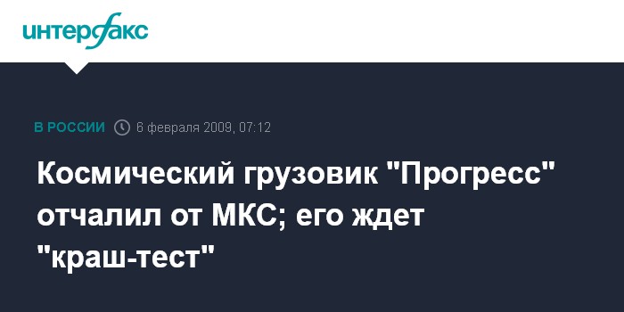 В автономном полете "Прогресс М-01М" проведет двое суток. В это время специалисты Центра управления полетами будут проводить летные испытания и тестирование систем корабля. Завершится испытания "краш-тестом": корабль сведут с орбиты и затопят в несудоходном районе Тихого океана, рассказал собеседник агентства.