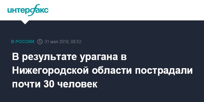 Москва. 31 мая. INTERFAX.RU - Почти 30 человек в Нижегородской области обратились за медицинской помощью после шторма, сообщает пресс-служба губернатора области в четверг.