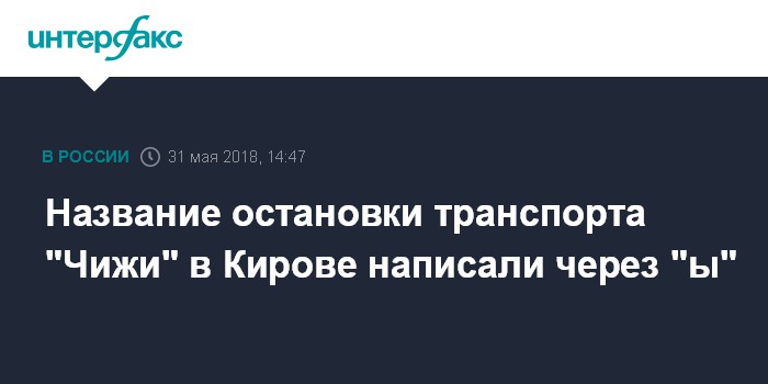 Москва. 31 мая. INTERFAX.RU - Название остановки общественного транспорта "Чижи" в Кирове написали через "ы", грубую ошибку заметили местные жители, сообщили в администрации города в четверг.