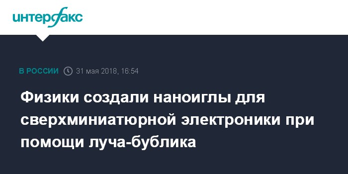 Москва. 31 мая. INTERFAX.RU - Международный коллектив физиков, в который входили сотрудники Института теоретической физики (ИТФ) имени Ландау, придумал способ создавать сверхтонкие – размером в несколько десятков атомов – элементы для наноэлектроники при помощи лазерных лучей в форме бублика (вихревых пучков) из высокоэнергичных фотонов. Точности других технологий не хватает, чтобы получать подобные структуры.
