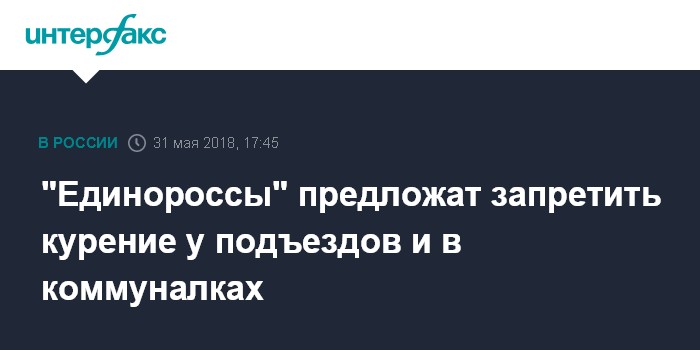 Москва. 31 мая. INTERFAX.RU - "Единая Россия" намерена законодательно запретить курильщикам дымить у подъездов и в коммунальных квартирах.
