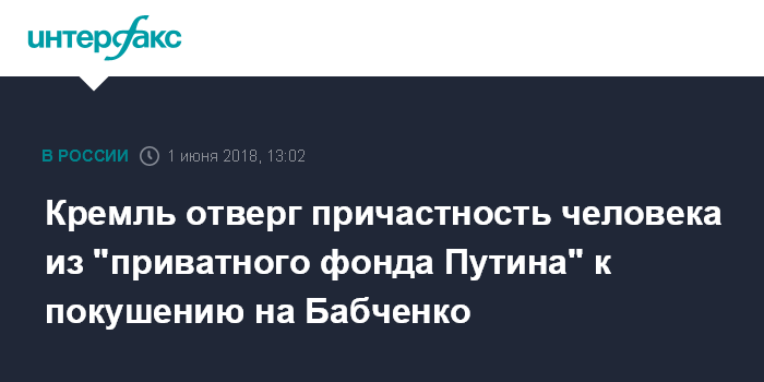 Кремль отверг причастность человека из "приватного фонда Путина" к покушению на Бабченко