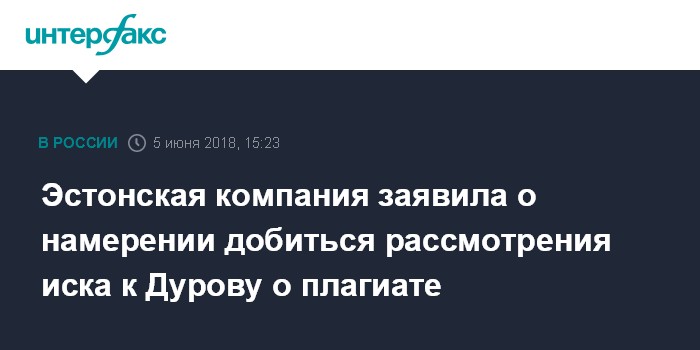 Эстонская компания заявила о намерении добиться рассмотрения иска к Дурову о плагиате