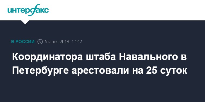 Координатора штаба Навального в Петербурге арестовали на 25 суток