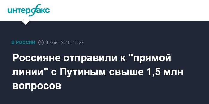 Москва. 6 июня. INTERFAX.RU - В преддверии "прямой линии" президенту РФ Владимиру Путину было задано более 1,5 млн вопросов.