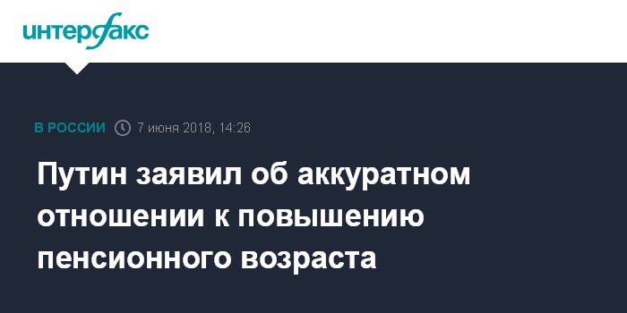 "Вы знаете мою позицию: я всегда относился и отношусь к этому (вопросу о повышении пенсионного возраста - ИФ) в высшей степени осторожно и аккуратно", - сказал Путин.