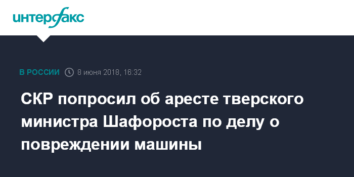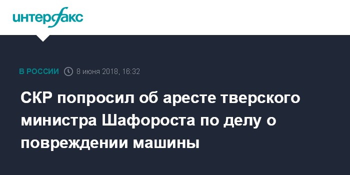 СКР попросил об аресте тверского министра Шафороста по делу о повреждении машины