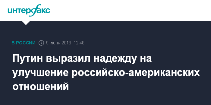 Москва. 9 июня. INTERFAX.RU - Президент РФ Владимир Путин рассчитывает на улучшение российско-американских отношений, чему могут способствовать саммиты Россия-США.