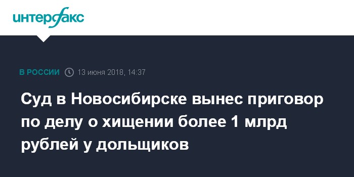Суд в Новосибирске вынес приговор по делу о хищении более 1 млрд рублей у дольщиков