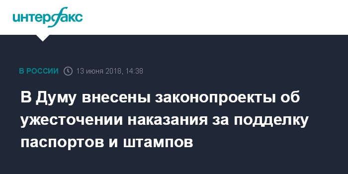 В Думу внесены законопроекты об ужесточении наказания за подделку паспортов и штампов