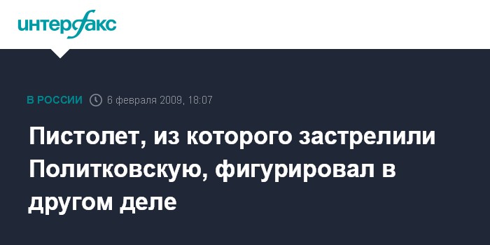 Москва. 6 февраля. ИНТЕРФАКС - Пистолет, из которого была убита Анна Политковская, ранее фигурировал в другом уголовном деле о покушении на человека.