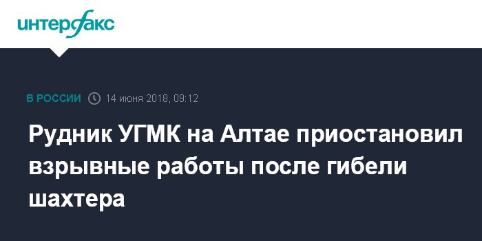 Москва. 14 июня. INTERFAX.RU - ОАО "Сибирь-Полиметаллы" (Алтайский край, входит в "УГМК-Холдинг") приостановило взрывные работы на Корбалихинском руднике после гибели шахтера в одном из забоев, сообщил "Интерфаксу" генеральный директор компании Александр Тишелович.