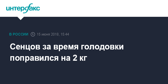 Москва. 15 июня. INTERFAX.RU - Состояние объявившего голодовку украинского режиссера Олега Сенцова, отбывающего наказание в колонии в РФ, удовлетворительное, за время голодовки он прибавил в весе два килограмма, сообщила уполномоченный по правам человека в РФ Татьяна Москалькова.