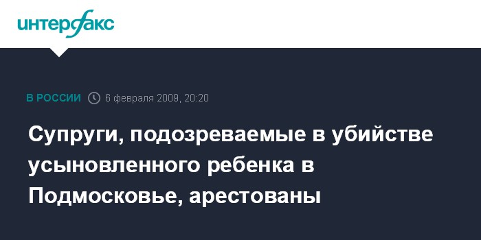 Москва. 6 февраля. INTERFAX.RU - Суд выдал санкцию на арест супружеской пары, задержанной по подозрению в убийстве усыновленного трехлетнего ребенка в Подмосковье.