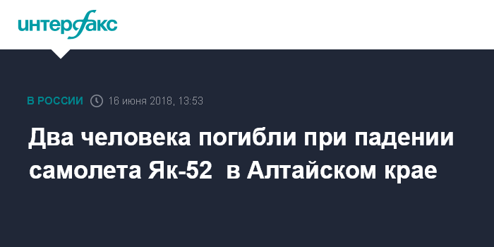 Два человека погибли при падении самолета Як-52 в Алтайском крае
