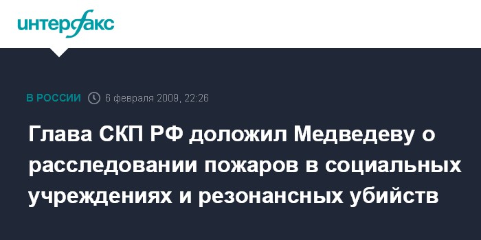 Глава СКП РФ доложил Медведеву о расследовании пожаров в социальных учреждениях и резонансных убийств