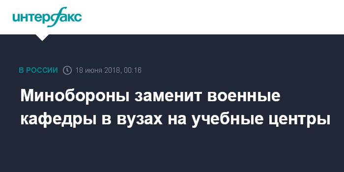 Москва. 18 июня. INTERFAX.RU - Единые военные учебные центры (ВУЦ) будут созданы в рамках оптимизации структуры военной подготовки в гражданских вузах России, сообщил журналистам статс-секретарь - замминистра обороны РФ Николай Панков.
