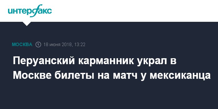 "42-летний уроженец Перу 17 июня рядом со стадионом "Лужники" похитил из кармана джинсов 30-летнего болельщика из Мексики три билета на матч между сборными Германии и Мексики на сумму в 1950 евро", - сказал собеседник агентства.