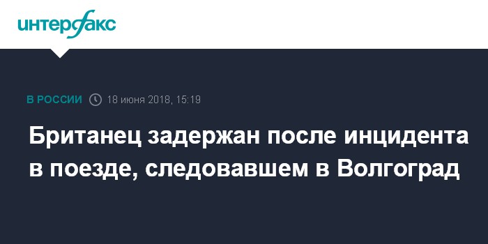 Москва. 18 июня. INTERFAX.RU - Британский подданный задержан в результате инцидента в поезде, следовавшем в Волгоград, сообщили в посольстве Великобритании в России.