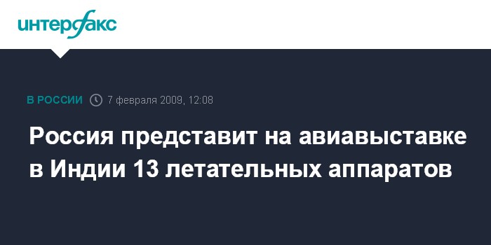 Москва. 7 февраля. INTERFAX.RU - 13 натурных образцов авиационной техники, в том числе двухместный многофункциональный фронтовой истребитель МиГ-35Д, представит Россия на международной авиационно-космической выставки "Аэро Индия - 2009", которая пройдет с 11 по 15 февраля в Бангалоре.
